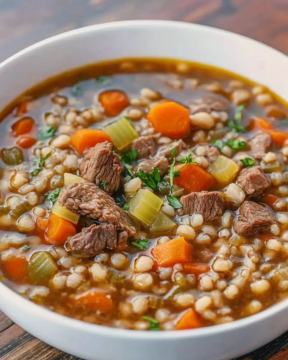 Eine herzhafte und nahrhafte Suppe mit Rindfleisch und Gerste, perfekt für kalte Tage.
