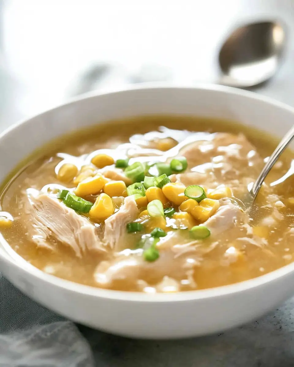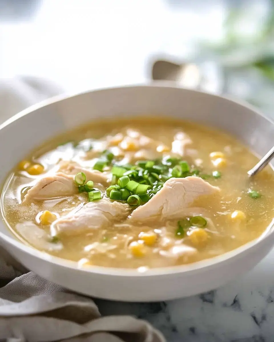 Eine köstliche und nahrhafte Hühner- und Maissuppe, perfekt für kalte Tage.