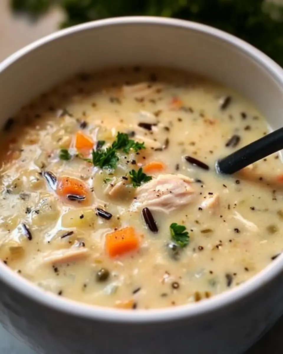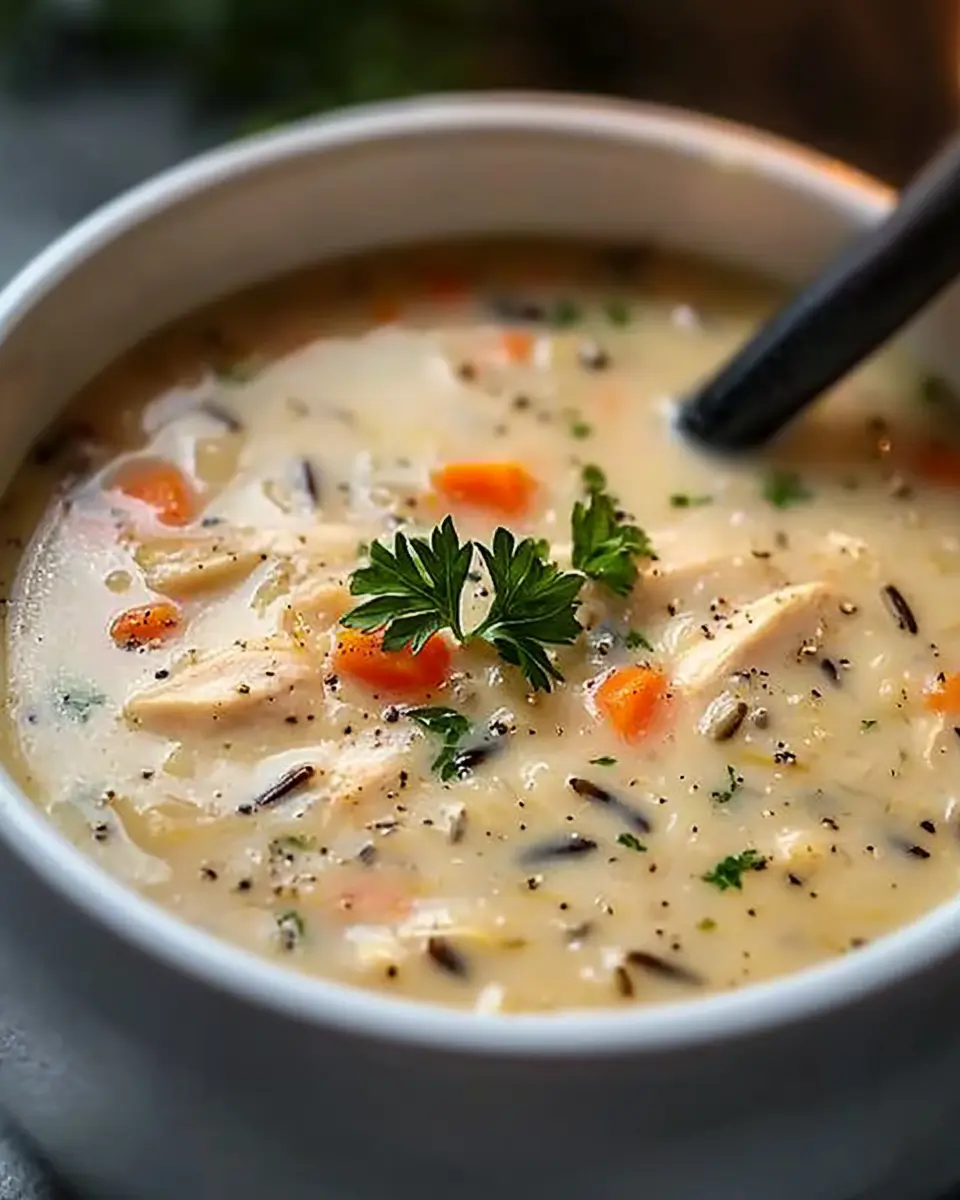 Eine herzhafte Hühner- und Wildreissuppe, die ideal für kalte Tage ist und voller Aromen steckt.