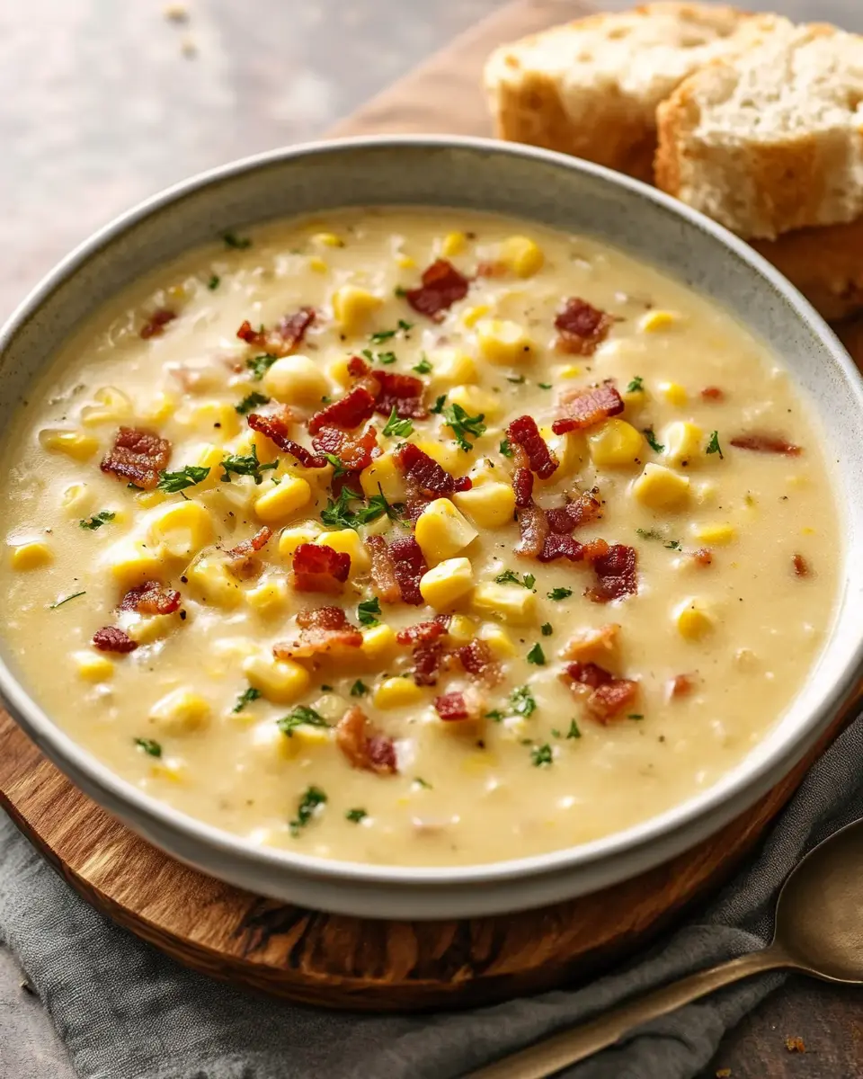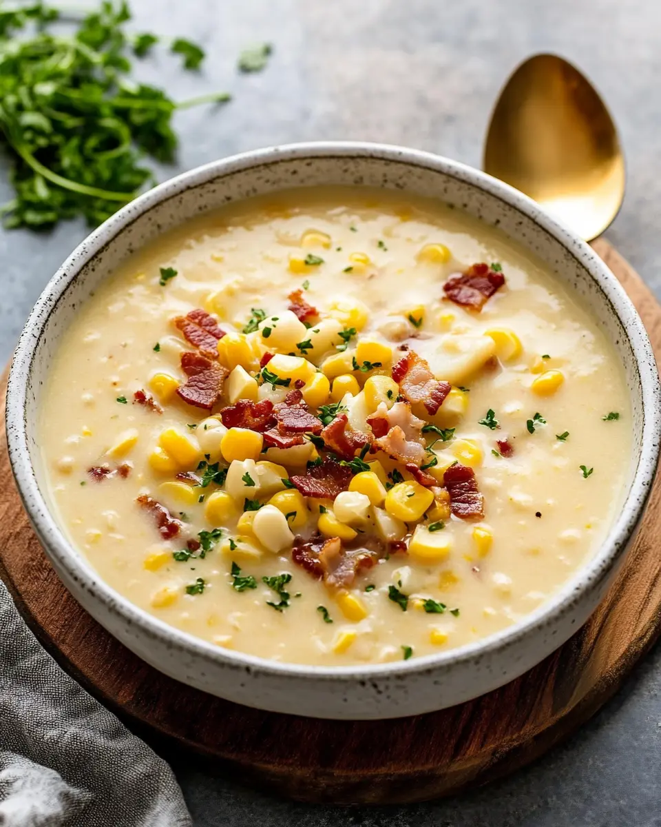 Eine leckere und herzhafte Maissuppe mit Speck.