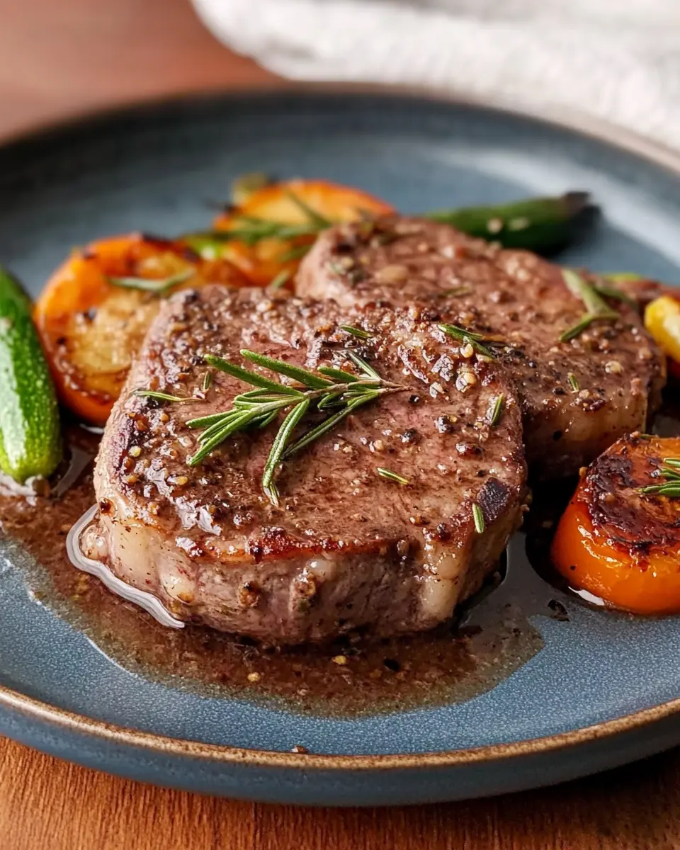 Zwei Zweige frischer Rosmarin bringen ein wunderbares Aroma ins Spiel. Rosmarin passt perfekt zu Rindfleisch und verleiht dem Steak eine mediterrane Note, die den Geschmack verstärkt.